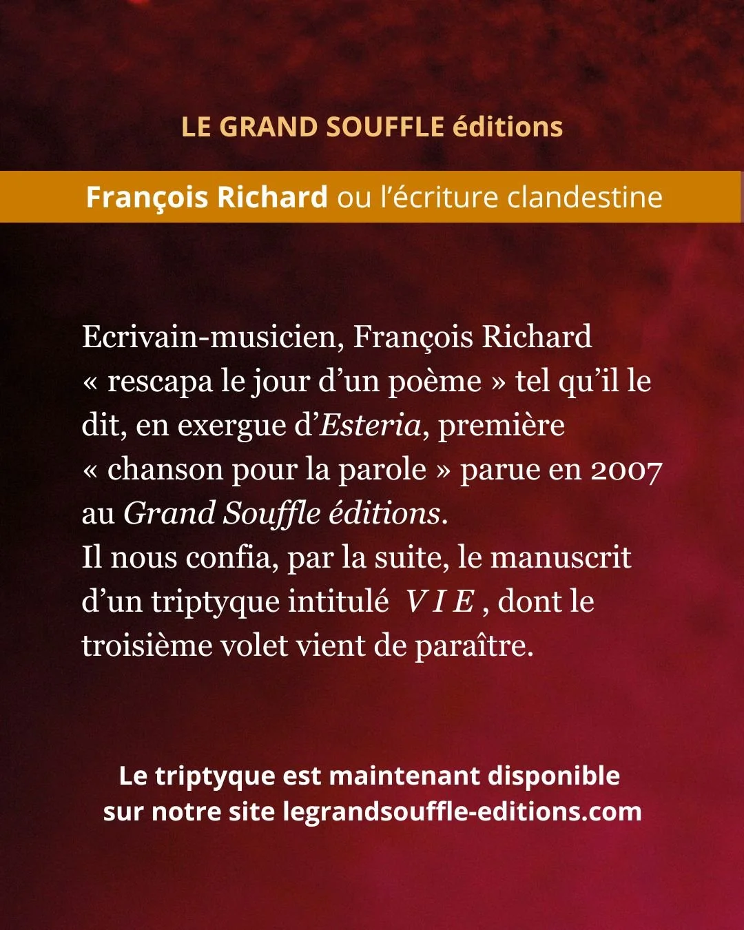 Nouveauté - le triptyque V I E / François Richard